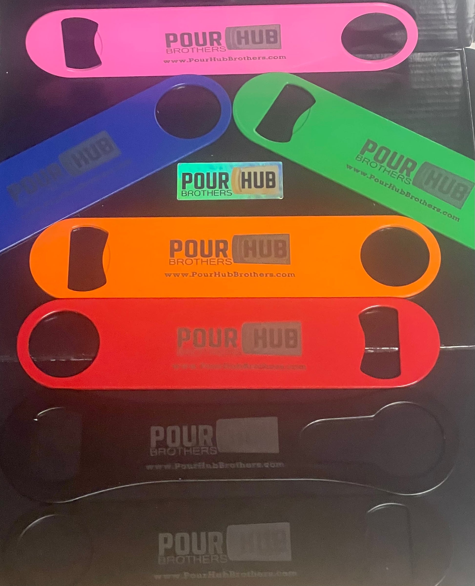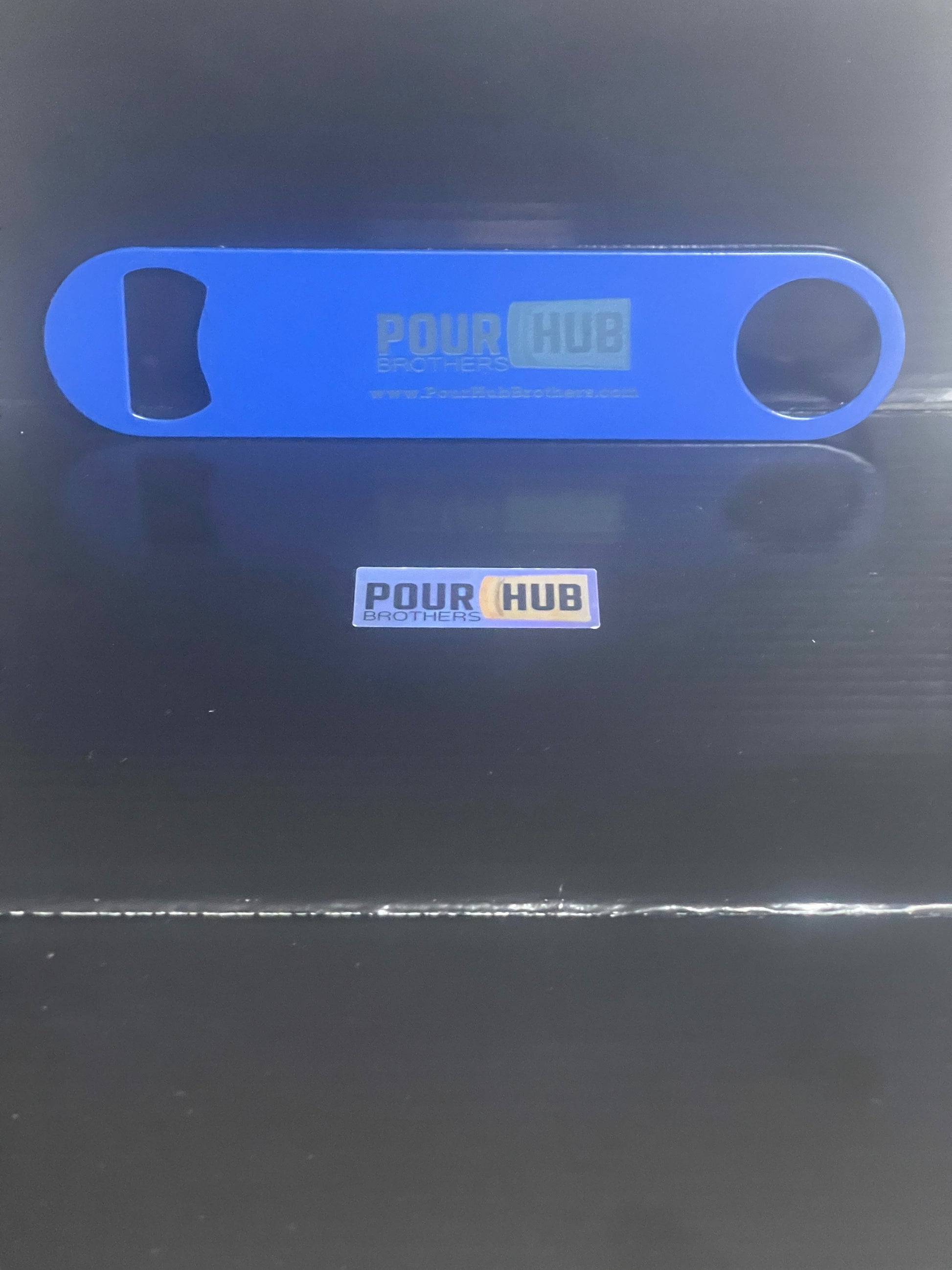 - Make a statement with a vibrant royal blue bar key, showcasing the PourHub Brothers logo in contrasting engraving. This option combines bold color with timeless branding.