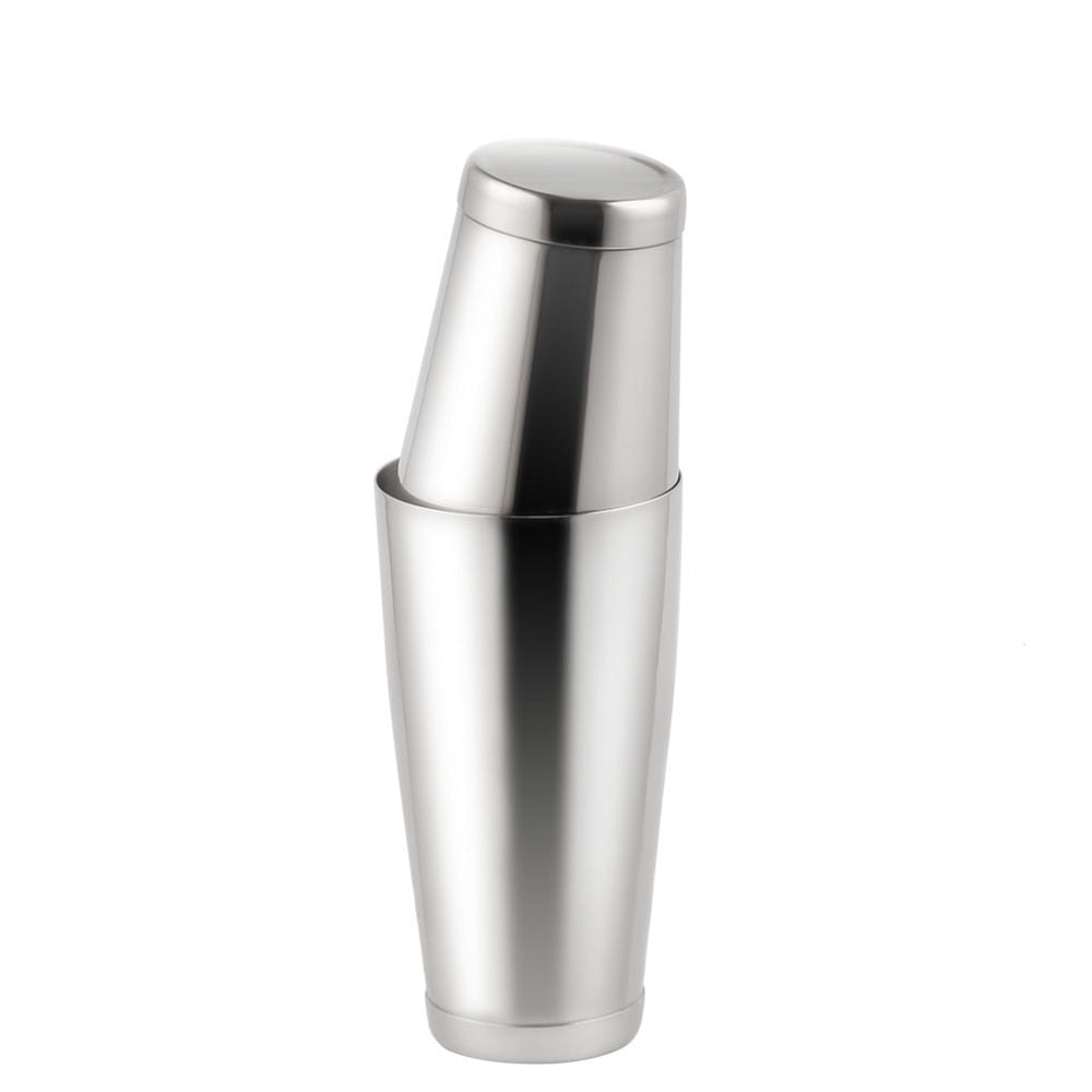 Cocktail Shaker: The main shaker features a stainless steel body with a sleek, polished finish. It's designed to hold and mix your favorite cocktails with ease.